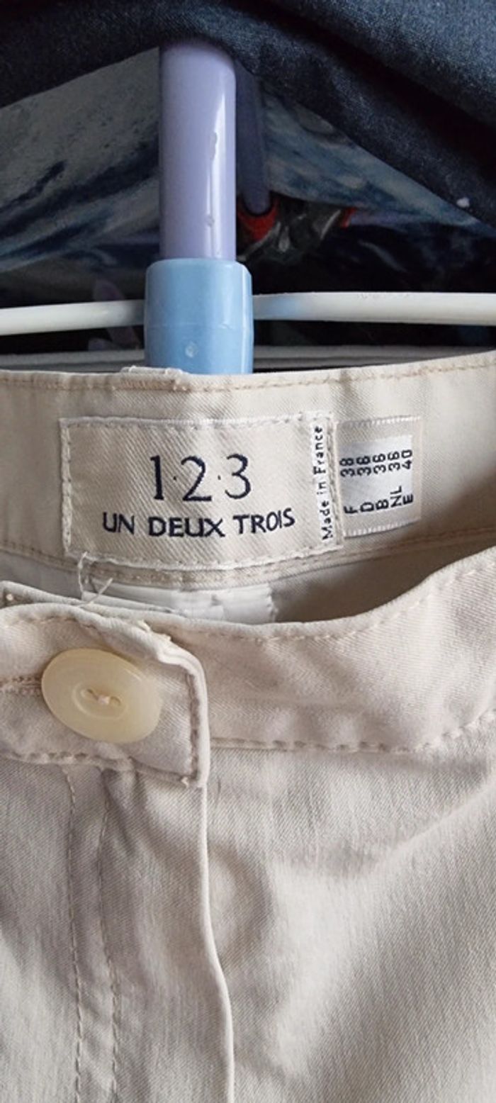 Très joli pantalon léger couleur crème avec poches, fermé par un zip et un bouton. Taille 38, marque 1.2.3 Excellent état. N'hésitez pas à regarder le dressing qui est classé par catégories et à me demander tout n'est pas en ligne. Vous pouvez aussi vous abonner je publie régulièrement des nouveautés 😀 Remise en main propre possible sur Vannes et alentours ou envoi rapide et soigné. Prix 10 € #angita56_trentehuitfemme
