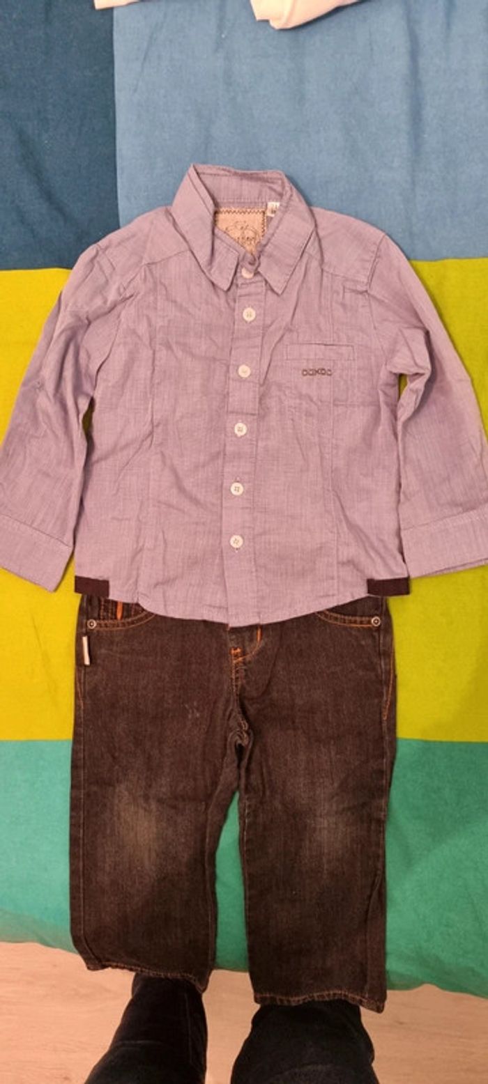 Ensemble garçon composé d'un jean de marque Berlingot et d'une chemise à manches longues OOXOO avec motif drapeau dans le dos. Excellent état. D'autres vêtements disponibles et autres tailles, dans le dressing. N'hésitez pas à me demander ☺️ A retirer sur Vannes et alentours ou envoi rapide et soigné. Taille 2 ans. Prix 5 € #angita56_vingtroismoisgarcon #angita56_deuxansgarcon #angita56_jeans #angita56_berlingot