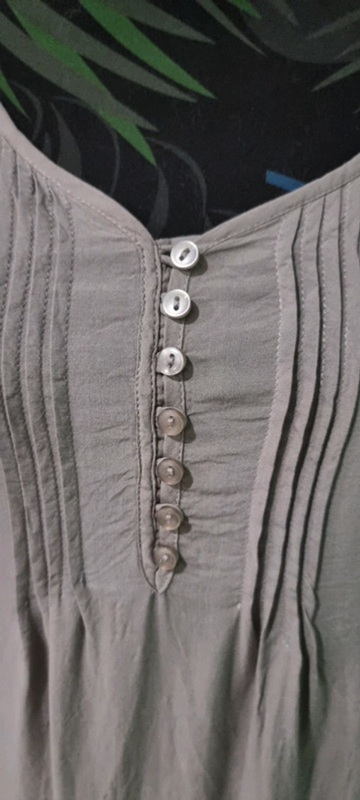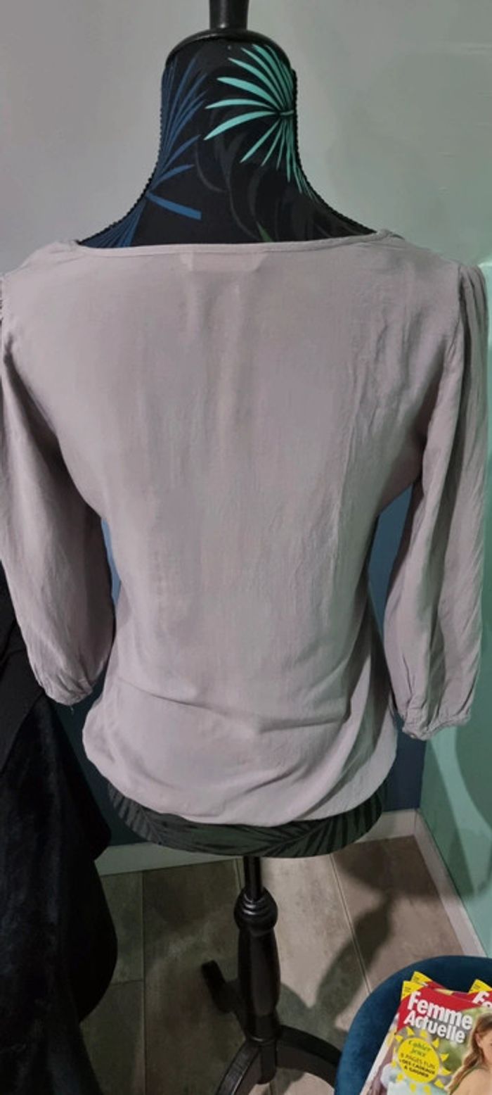 Jolie blouse grise taille 36, matière fluide très joli rendu. Les boutons sont en décoration car la blouse s'enfile par la tête. Manches 3/4 et taille resserrée. Neuve jamais portée juste lavée. A retirer sur Vannes et alentours ou envoi rapide et soigné. Prix 3€ #angita56_trentesixfemme