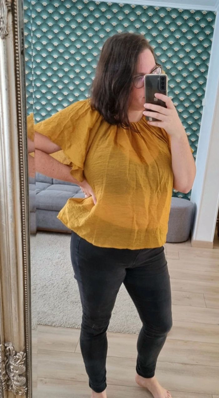 ▪️Taille L, taille normalement ▪️Porté max 3 fois, comme neuf ▪️Acheté 18€ #blouse #blousemoutarde #moutarde #Camaïeu #blousecamaieu #fashion #style #mode #look #tendance #femme #vêtementsfemme