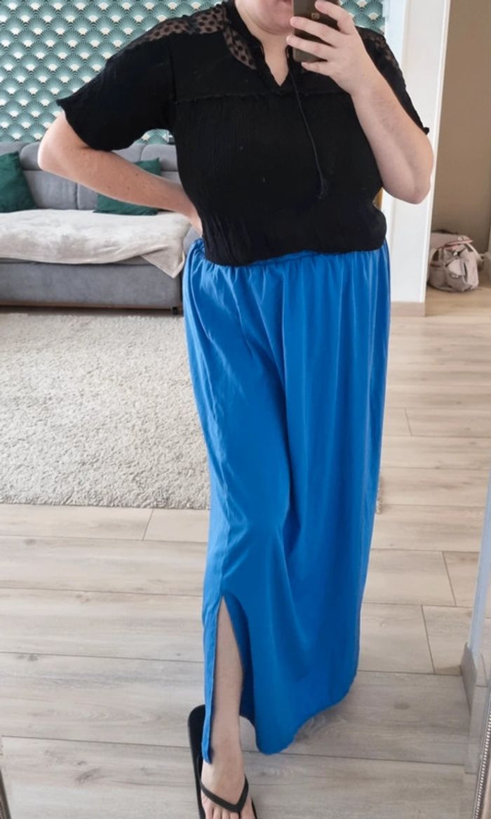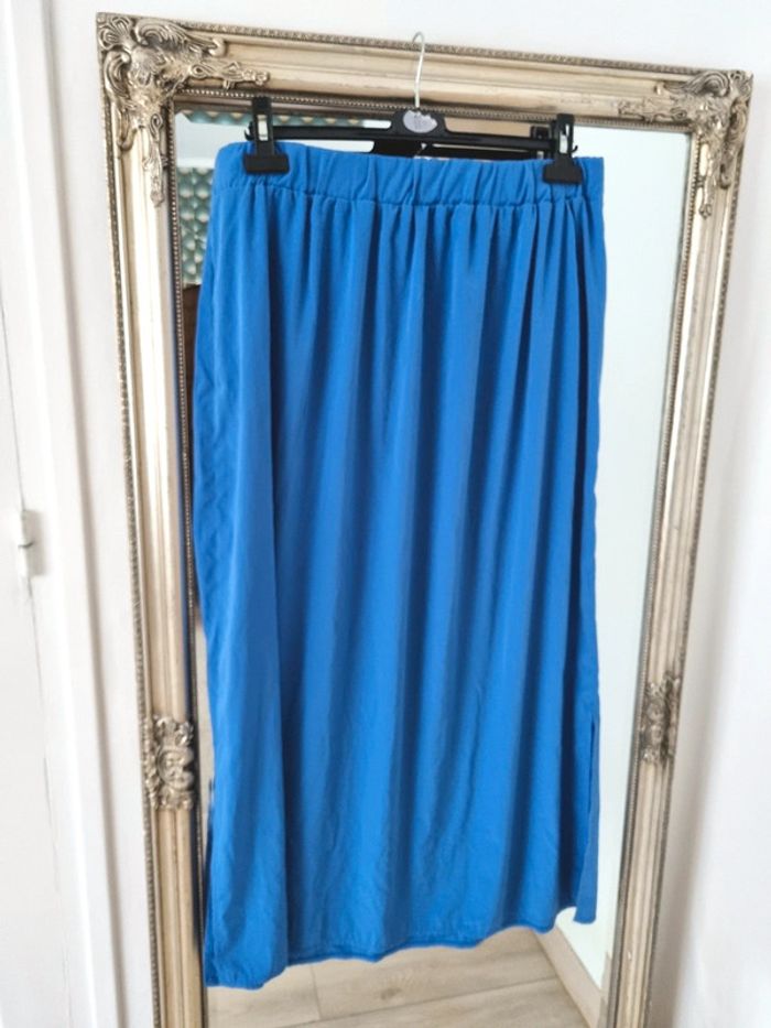 ▪️Taille 42, taille normalement ▪️Porté que 3 fois, bon état général ▪️Acheté 25€ ⚠️Légèrement décousue au niveau de l'élastique (reparable, voir photos) #jupe #longuejupe #jupelongue #jupebleu #jupepimkie #pimkie #bleuélectrique #femme #vetementsfemme #fashion #style #mode #look #tendance