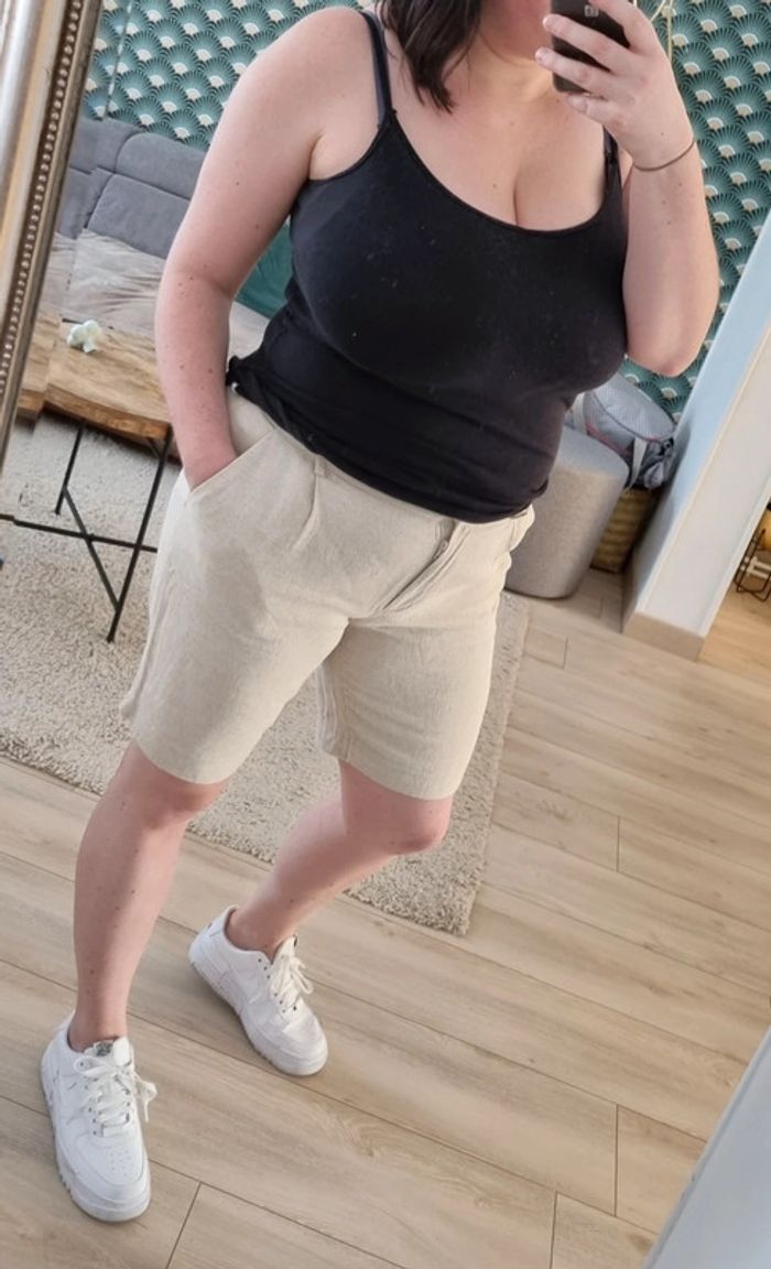 ▪️Taille 44, taille petit ▪️Convient plutôt pour un 42 ▪️Porté max 5 fois, comme neuf ▪️Acheté 15€ #short #shortbeige #shortkiabi #kiabi #shortfemme #beige #femme #vetementsfemme #fashion #style #mode #look #tendance #grandetaille #grandetaillefemme