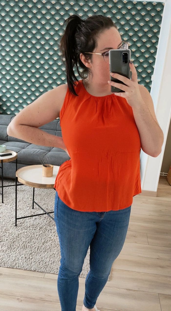 ▪️Détails boutonnée ds le dos ▪️Taille 44, taille normalement ▪️Porté max 4 fois, comme neuve ▪️Acheté 20€ #blouse #orange #blousecamaieu #blousefemme #camaieu #fashion #style #mode #look #tendance #femme #vetementsfemme #blouseorange #grandetaillefemme