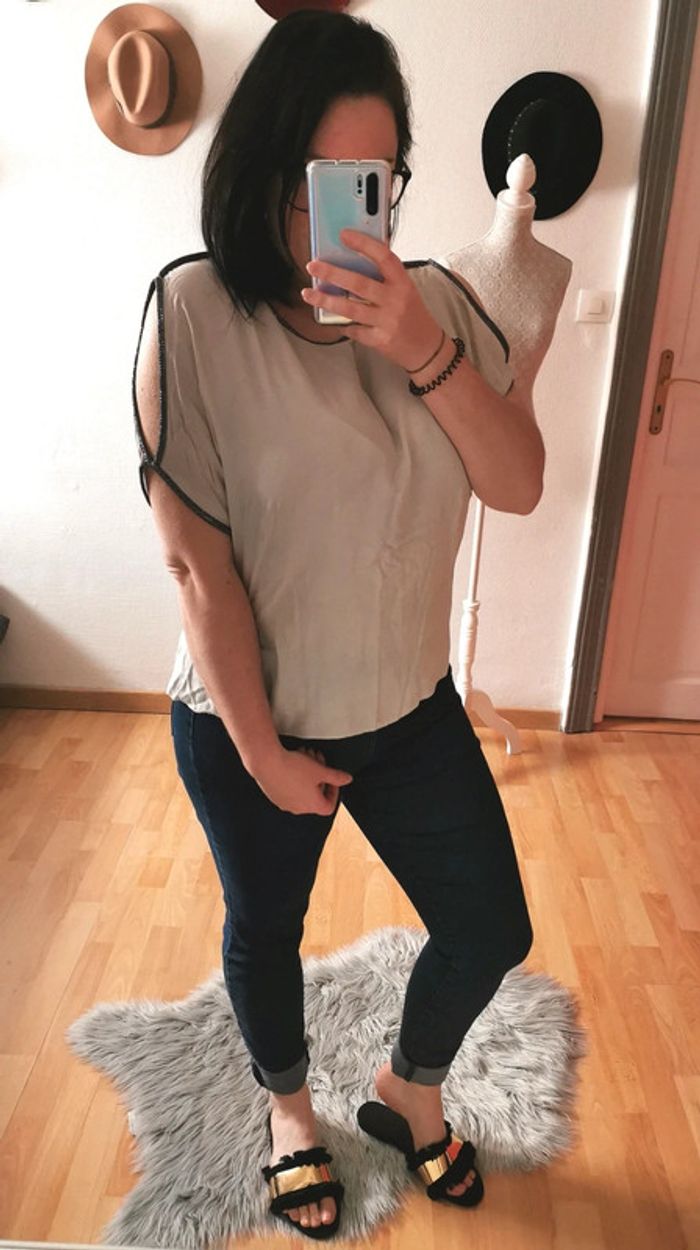 ▪️Détails liseré argenté et ouverture sur les épaules ▪️Taille unique ▪️Convient pour un 40, max 42 ▪️Portée que 3 fois, comme neuf ▪️Achetée 30€ #blouse #blousefemme #femme #vêtementsfemme #fashion #style #mode #look #tendance #beige #epaulesdenudées #tailleunique #boutiqueindependante