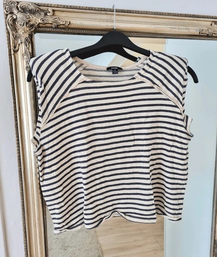 ▪️Taille XL, taille petit ▪️Convient plutôt à un L ▪️Contient des epaulettes ▪️Porté qu'une seule fois, comme neuf ▪️Acheté 12€ #tshirt #tshirtfemme #tshirtrayé #rayures #kiabi #tshirtkiabi #fashion #style #mode #look #tendance #femme #vetementsfemme