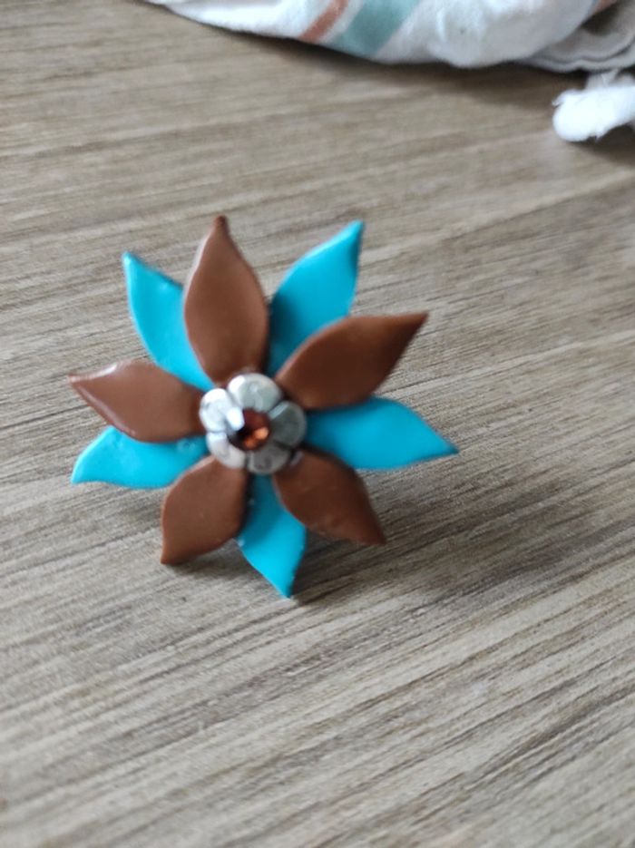 Bague fleur marron et turquoise Taille ajustable Acheté sur un marché artisanal #baguefantaisiefemme #baguefleur #baguefleurajustable