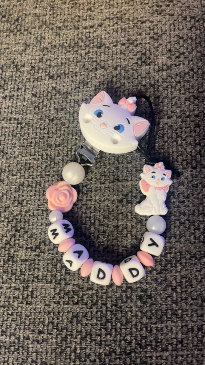 Attache tétine personnalisé en silicone ou en bois au souhait de l’acheteur . Personnalisable au choix de l’acheteur que ce soit la couleur comme le prénom ou le thème . Le fil est doublé pour plus de sécurité tout le long de l’attache tétine. N’hésitez pas à me demander et regarder mon dressing. Une photo vous sera envoyée avant l’expédition pour vous ayez un aperçu du rendu. Tous les produits sont réalisés avec du materiel spécial conçu aux bébés , enfants.