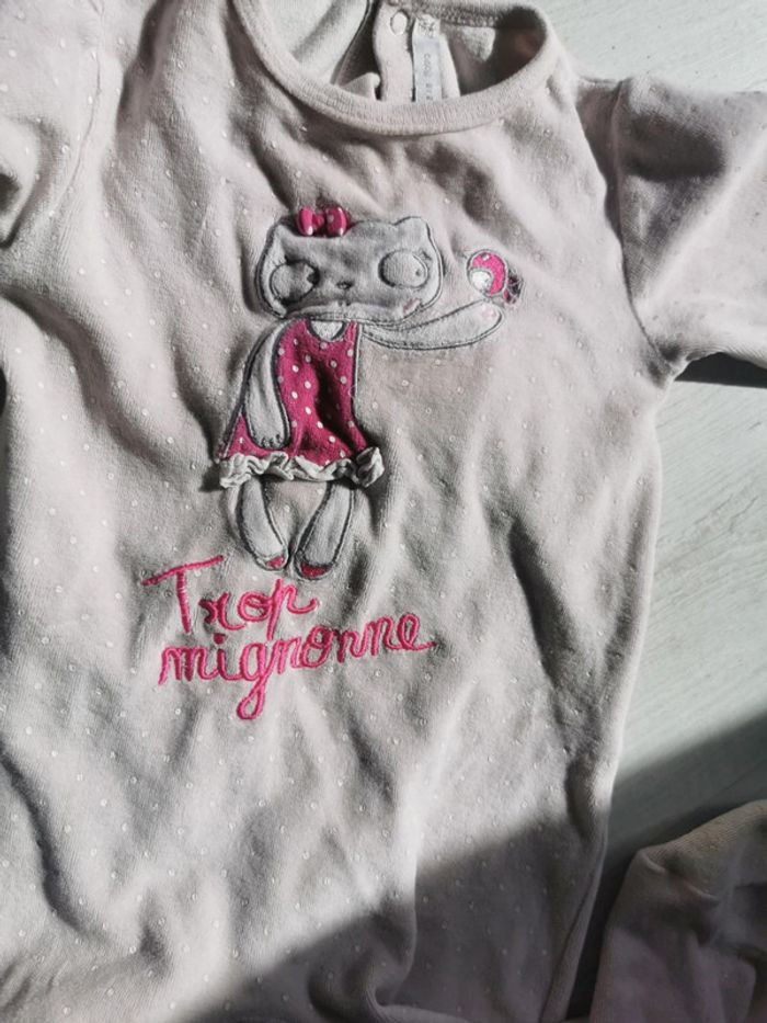 Pyjama taille 2 ans Cf défaut en photo, légères traces sous les pieds Défaut pression recousu #filledeuxanscharlene77140