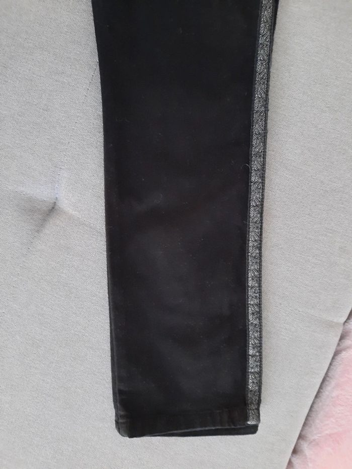 Pantalon chino Kaporal taille 36 Noir Liseret argenté motif cachemire le long de la jambe Stretch : 98% coton 2% élastanne Très bon état #adelaide7624vetementsfemme36