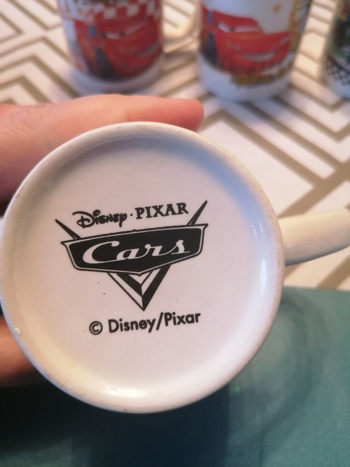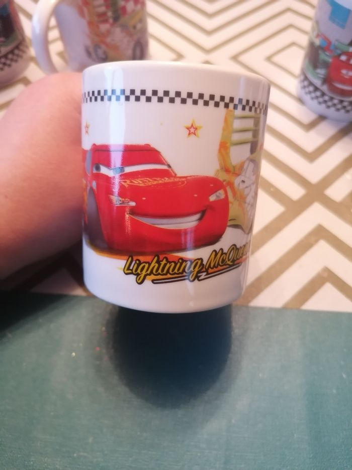 Lot de 4 mugs cars en très bon état. Envoyer dans du papier bulle et inscription fragile sur le carton.