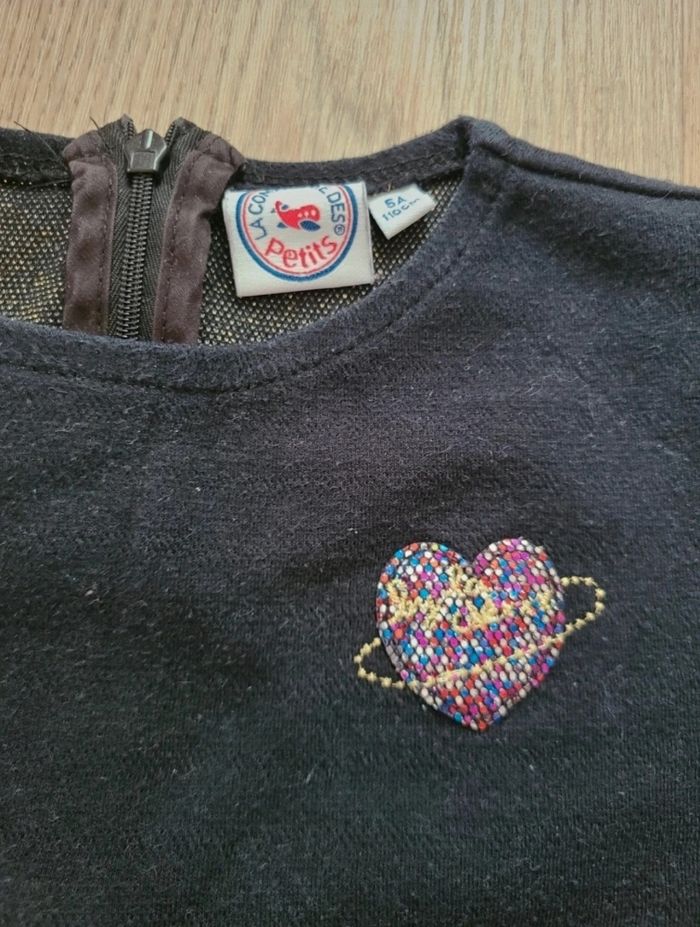 Robe manche courte 5 ans Noir motif cœur Fermeture éclair dans le dos Bord des manches doré pailleté