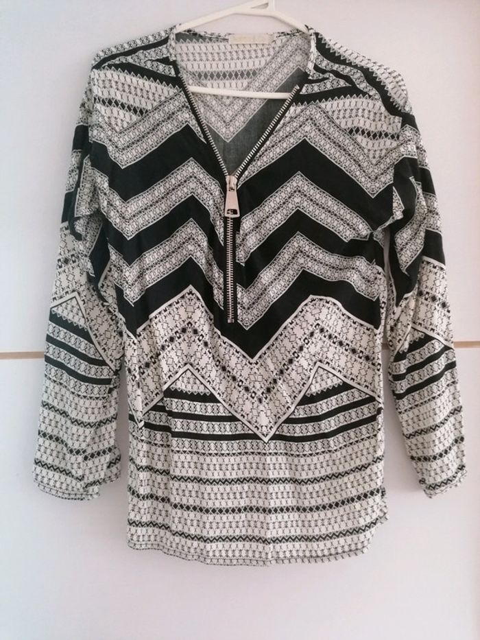 Tunique/blouse noire & blanche manches ajustables taille S/M - imprimé graphique #espanolitinafemme