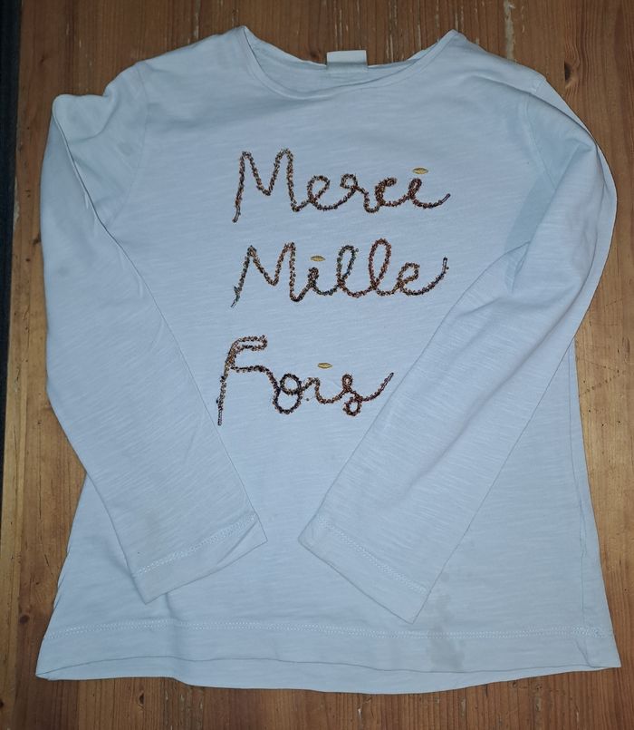 Vends un haut à manches longues de couleur beige, la photo le rend bleu, en 8 ans de la marque Zara 1E