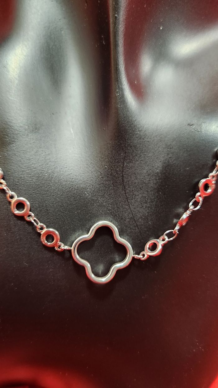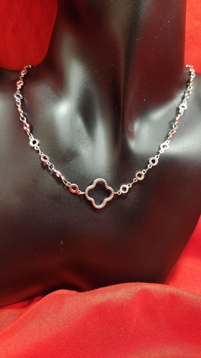 Neuf En acier inoxydable 316L Collier argenté trèfle et un acheminement de cercles Idéal avec ses boucles dans mon dressing