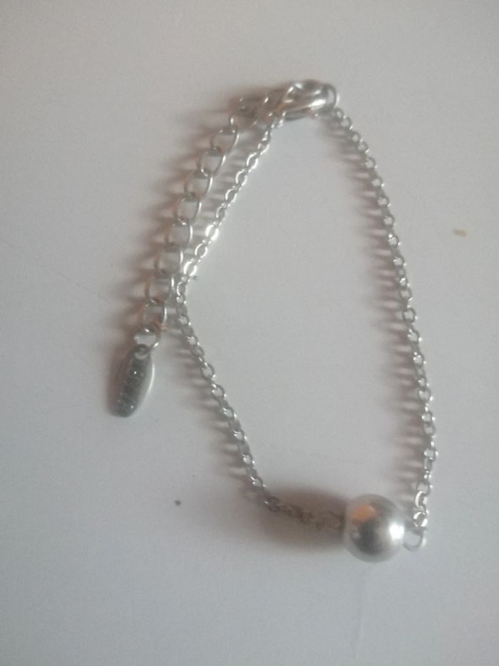 🌸Bracelet argenté en acier inoxydable et pampille boule 🌸