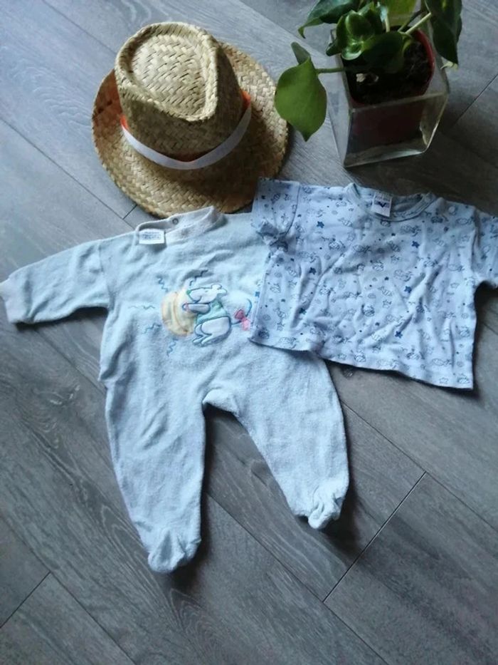 🌸 Lot Grenouillère mixte bleu "Natalys" et tee-shirt "Absorba" 🌸 - photo numéro 1