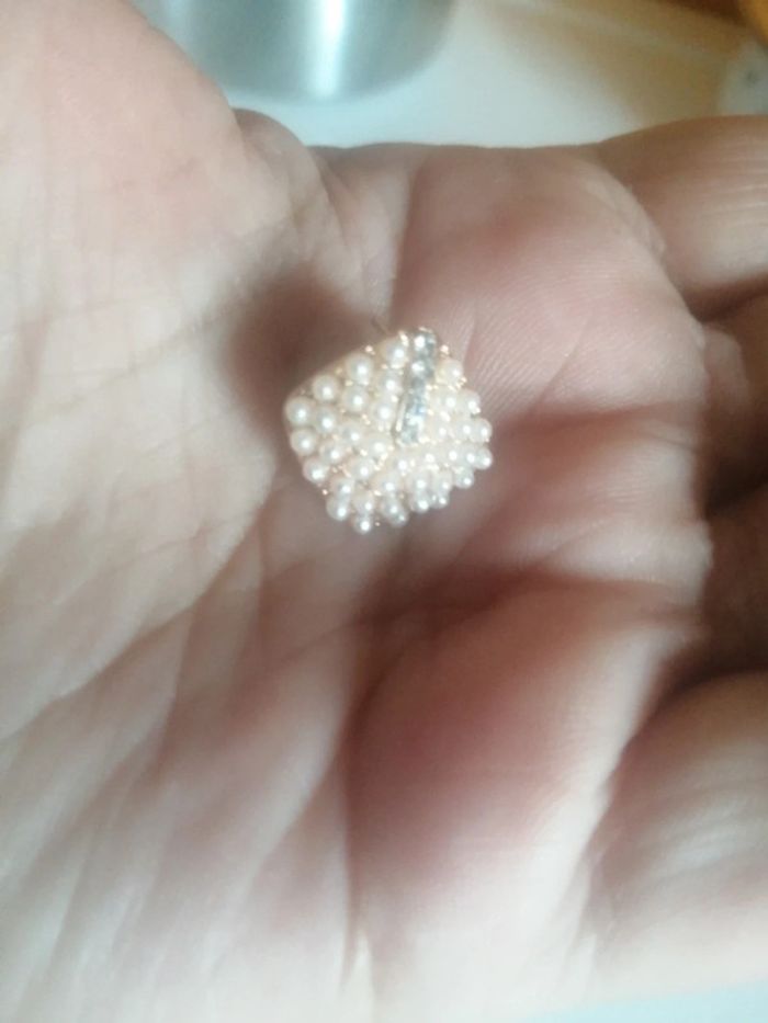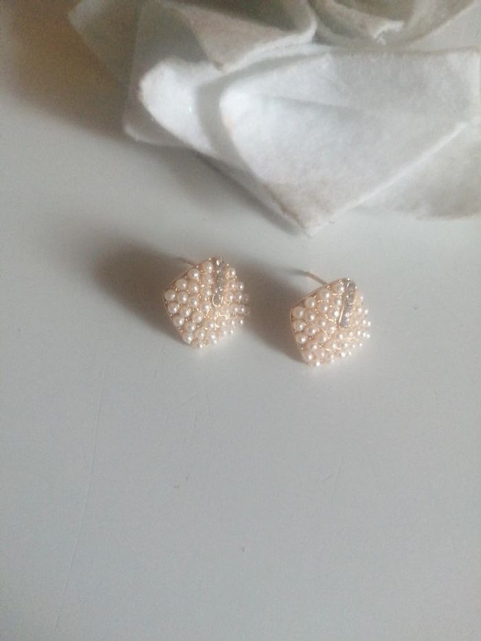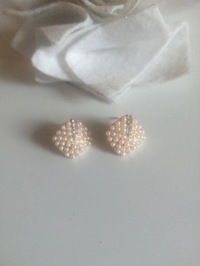 🌸Puces d'oreilles perles beiges et zirconium années 80 "Vintage" 🌸 - photo numéro 2