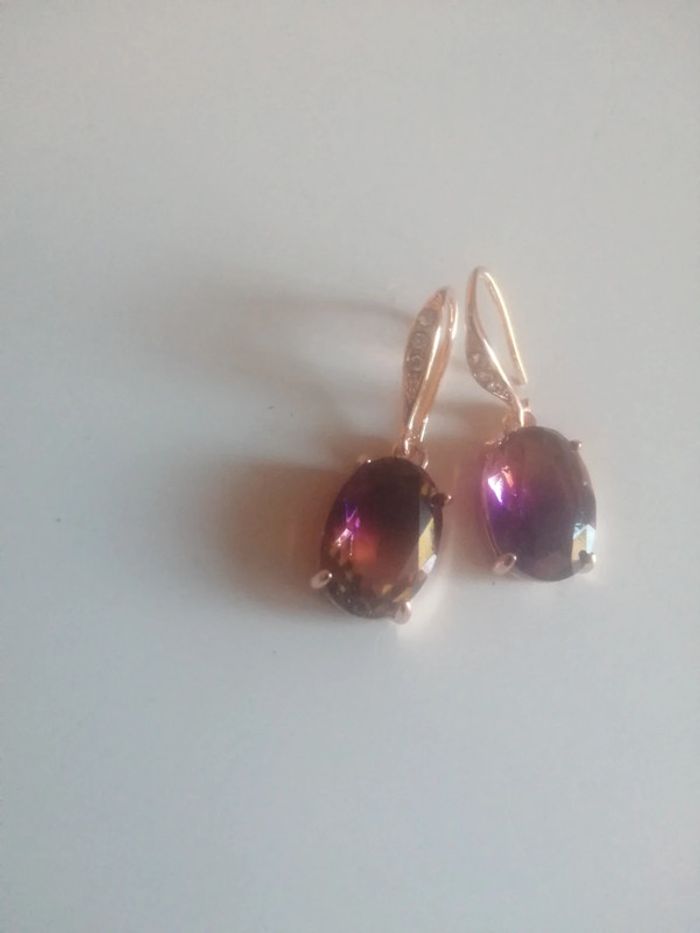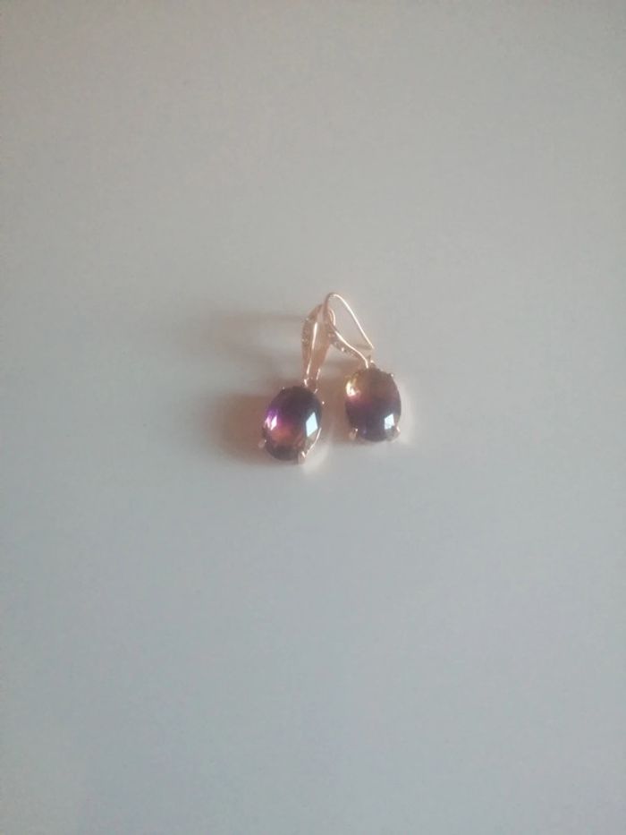 🌸Jolies dormeuses dorées Zirconiums et cristal violet "Boutique Parisienne" #années80 🌸 - photo numéro 2