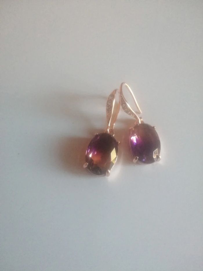 🌸Jolies dormeuses dorées Zirconiums et cristal violet "Boutique Parisienne" #années80 🌸 - photo numéro 1