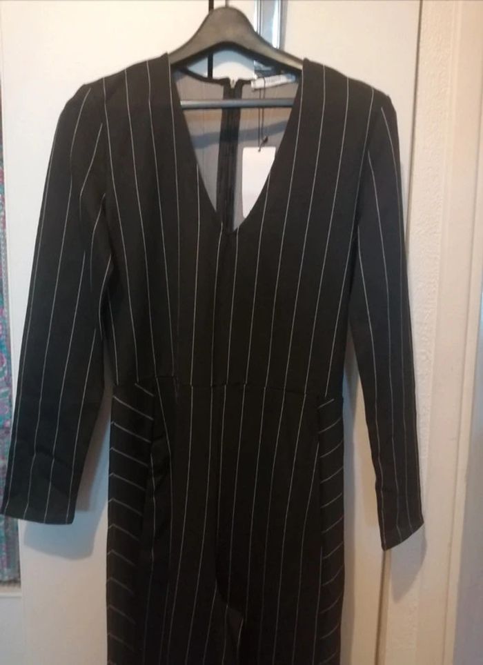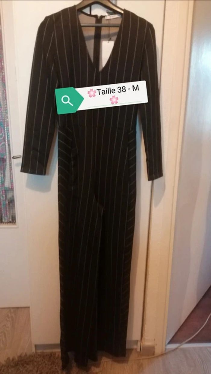 🌸Combinaison noire longue à rayures blanches décolletée Taille 38 "Mango" Neuve 🌸 - photo numéro 1
