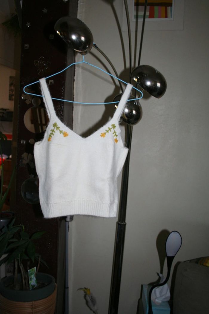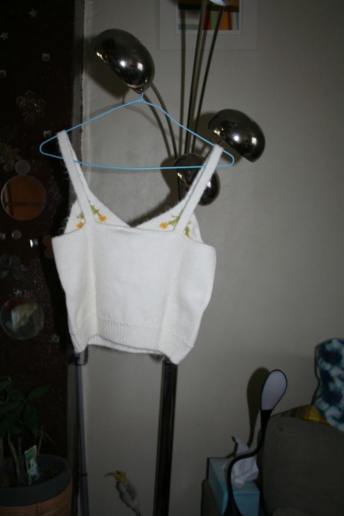 🌸Top crop maille à broderies  fleurs Taille 40 "Mango" 🌸 - photo numéro 3