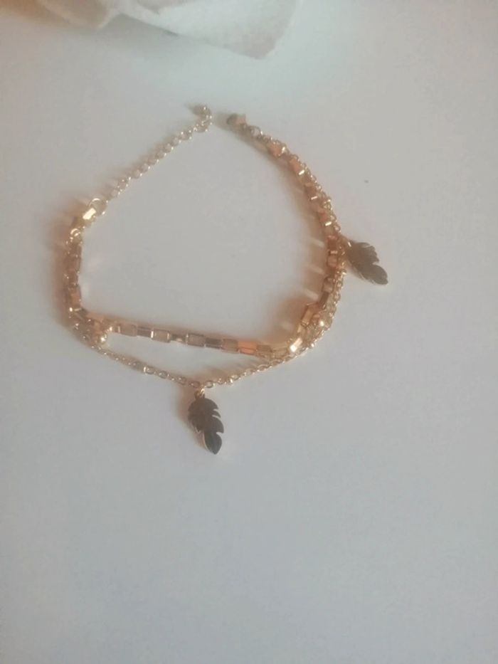 🌸Bracelet double rangs avec pampilles plumes et boules dorées  "Histoire d'or" 🌸 - photo numéro 1