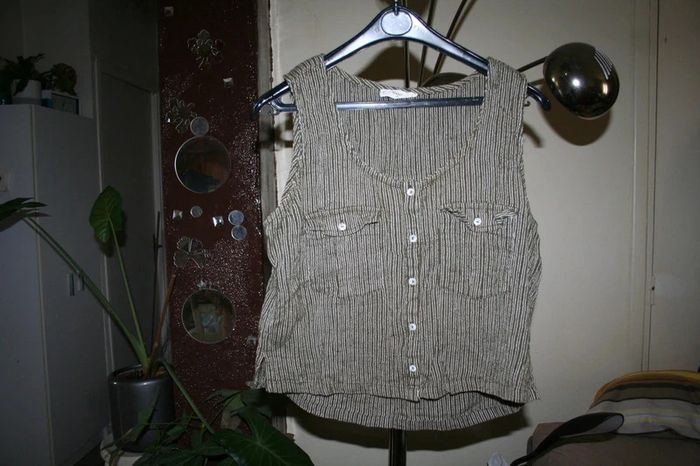 🌸Top cropped lin kaki et blanc Taille 40 "Mango" 🌸 - photo numéro 1