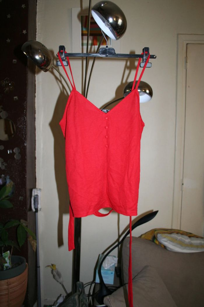 🌸Charmant top rouge fines bretelles Collection2023 Taille 36 "Mango" Neuf Avec étiquette 🌸 - photo numéro 3