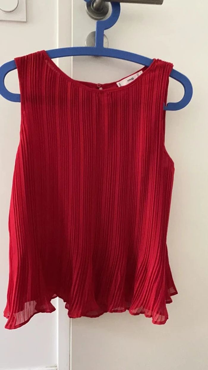 🌸Top oversize plissé rouge Taille 40 Collection 2023 "Mango" Neuf - photo numéro 1