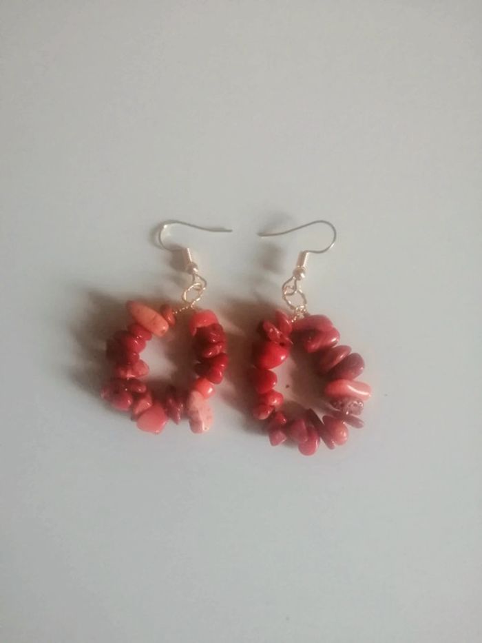 🌸Créoles dorées ovales corail "harmonie et minéraux" Idéal pour un cadeau de noël 🎄🌸 - photo numéro 4