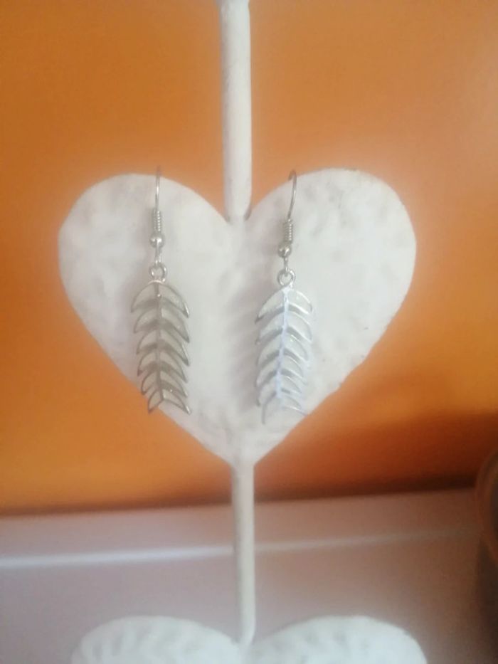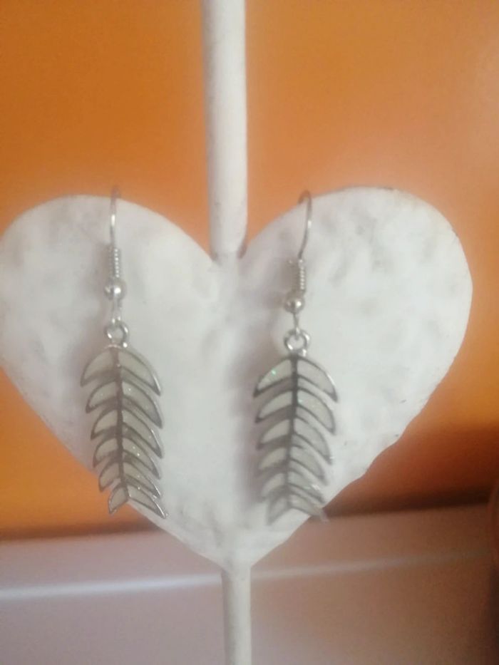🎄Boucles d'oreilles feuilles email blanc Idéal pour un cadeau de noël 🌲 - photo numéro 1