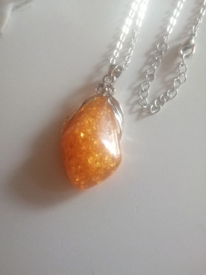 🌸Collier chaîne argentée et pendentif jaune naturel "le temple de yogi" 🌸 - photo numéro 1