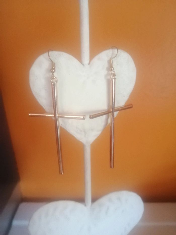 🌸Boucles d'oreilles longue croix dorée "tendance " 🌸 - photo numéro 2