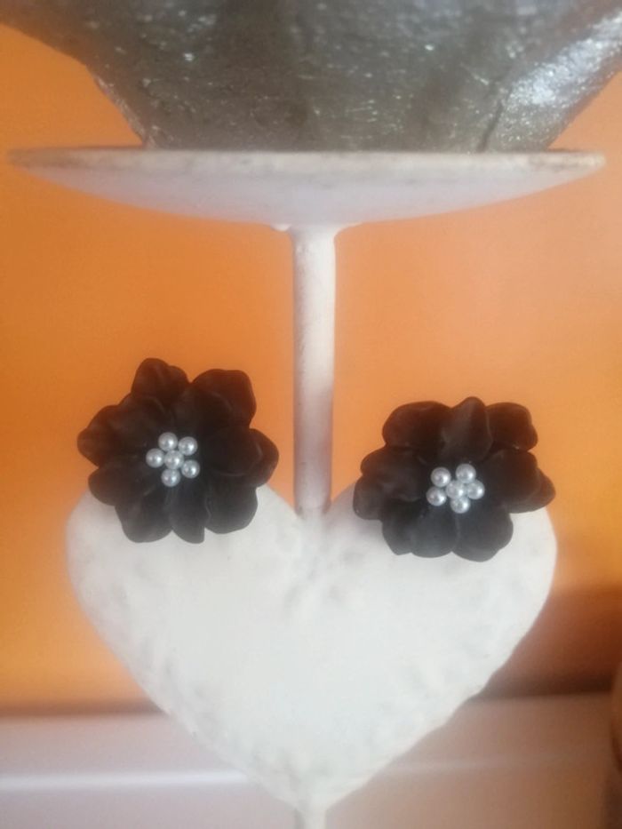 🌸Très bon état 🌸Puces d'oreilles en résine, perles blanches au cœur 🌸Diamètre de 2,5 cm 👁️‍🗨️Regarder les autres bijoux pour optimiser vos frais de port #fleurette6767bijoux 👁️‍🗨️ #bouclesdoreillesfleurs #bouclesdoreillesrésine #fleursnoiresetblanches #bijouxvintage #bijouxretro #bouclesdoreillesvintage