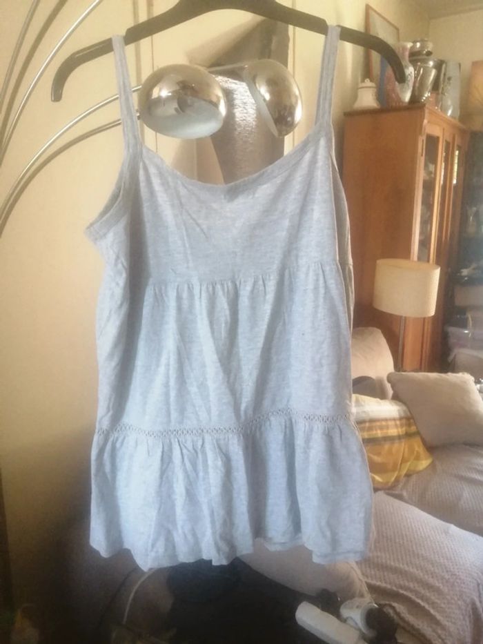 🌸Débardeur volant gris dentelle oversize Taille 38/40  Neuf 🌸 - photo numéro 1