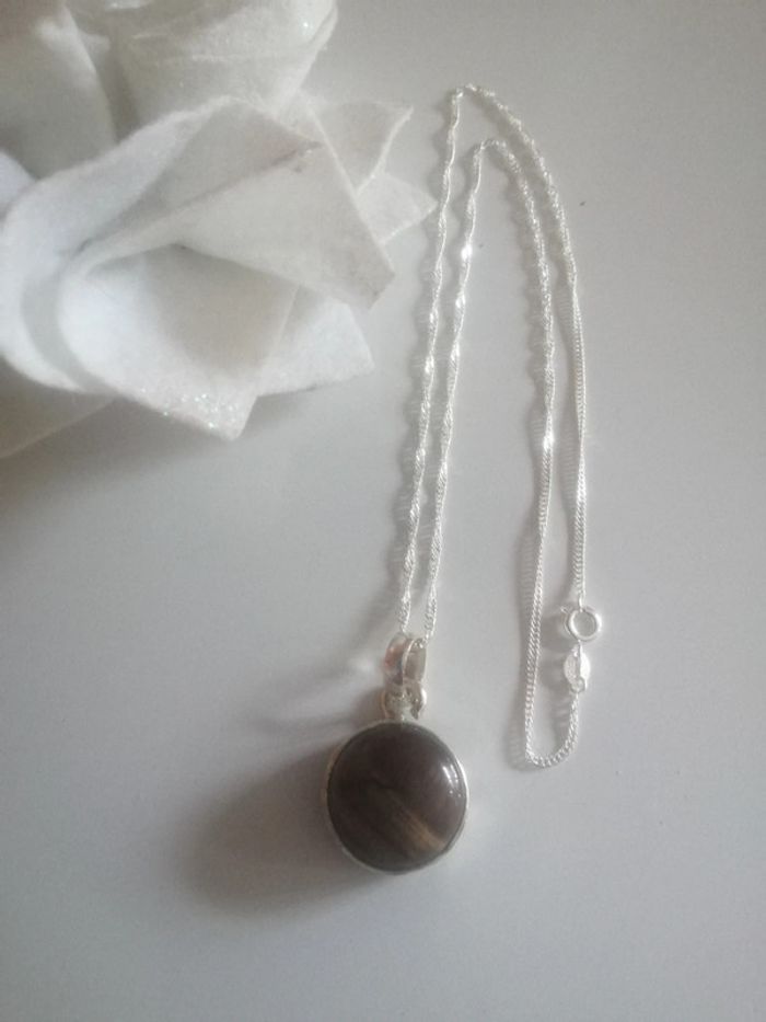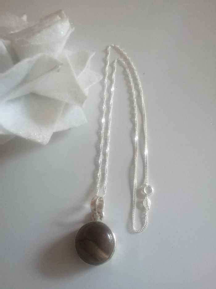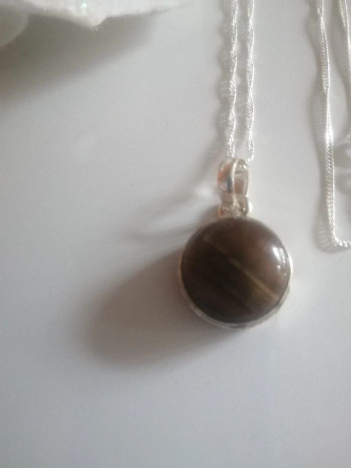 🌸Chaîne en argent avec pendentif œil de tigre "l'arbre des Chakras" 🌸