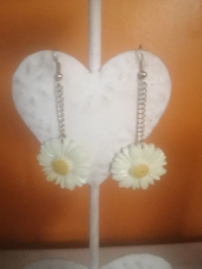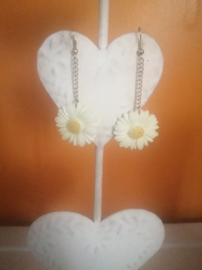 🌸Boucles d'oreilles longue chaîne et marguerite Tendance 2022 "Etsy"Neuves 🌸 - photo numéro 2