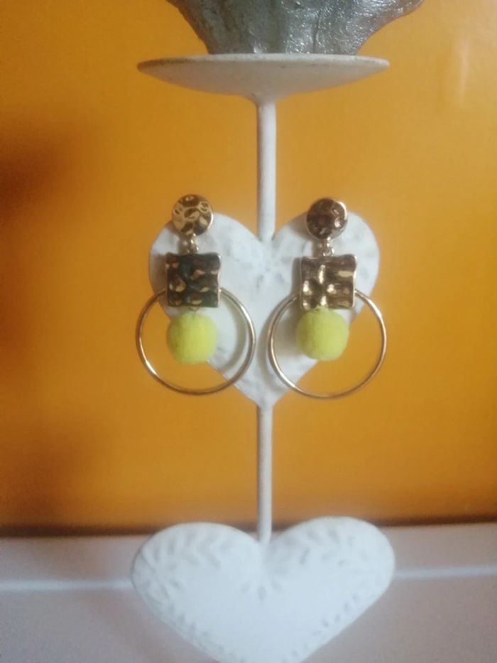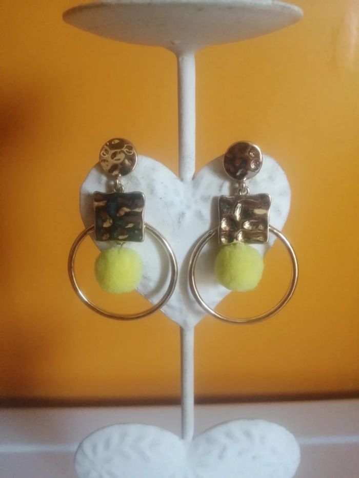 🌸Boucles d'oreilles rondes à pompon jaune "Ikita" 🌸 - photo numéro 1