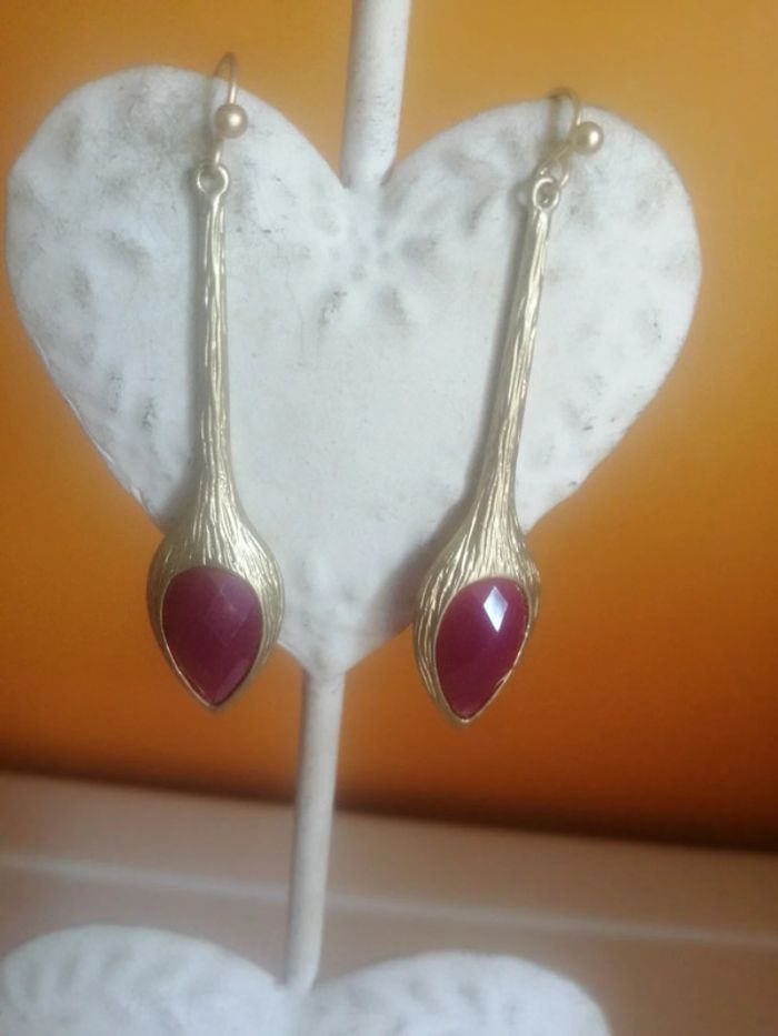 🌸Boucles d'oreilles  dorées tulipe fushia "Vintage " 🌸
