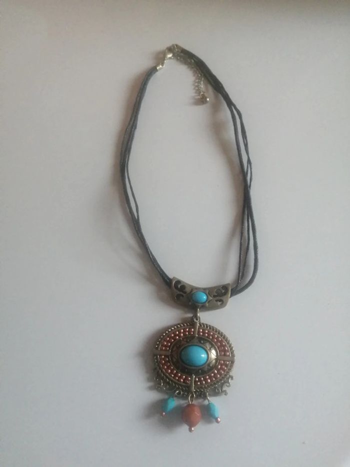 🌸Collier cordon noir au plastron turquoise 🌸 - photo numéro 1