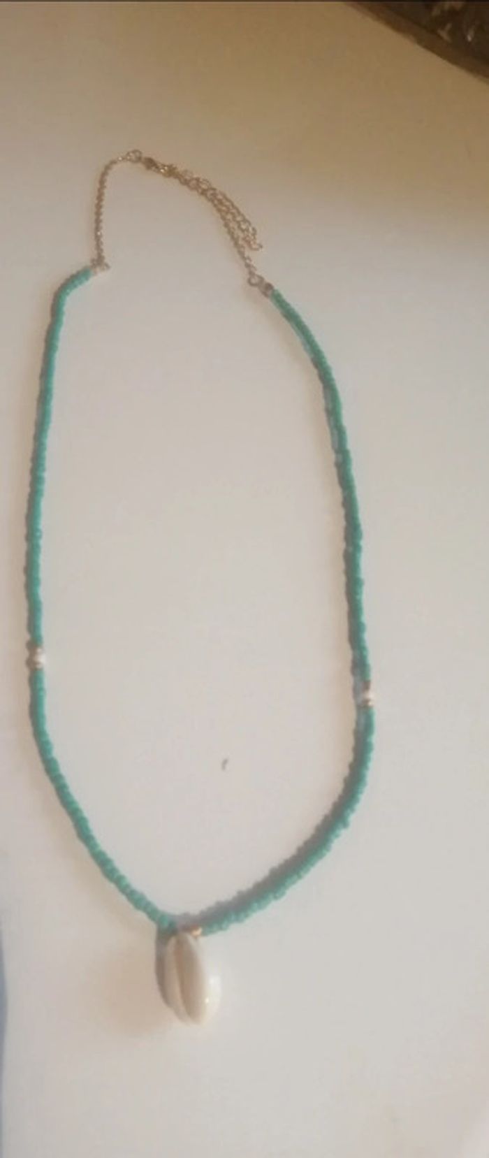 🌸Collier bleu coquillage cauri blanc Neuf "Bijoux Coquillages" 🌸 - photo numéro 3