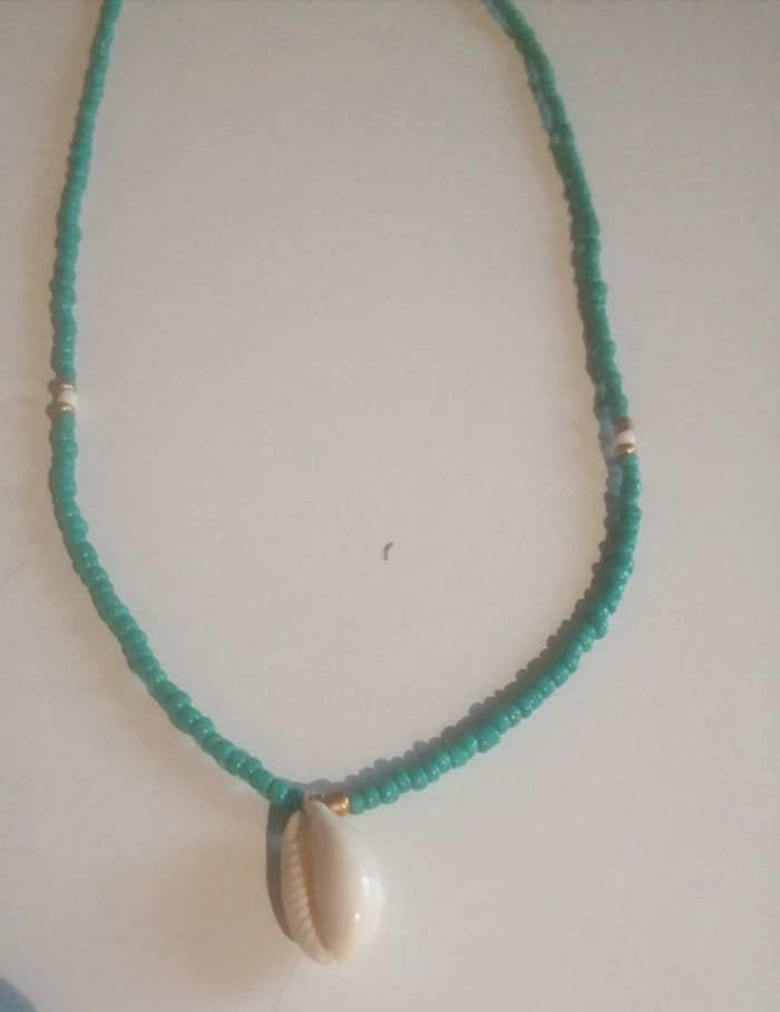 🌸Collier bleu coquillage cauri blanc Neuf "Bijoux Coquillages" 🌸 - photo numéro 1
