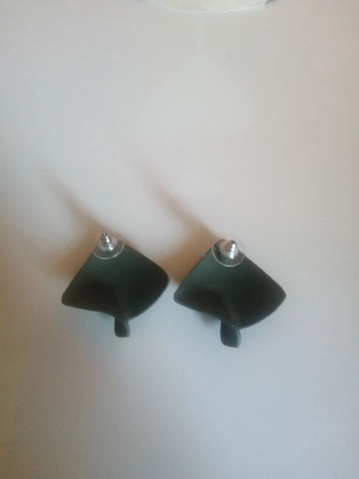 🌸Puces d'oreilles acétate kaki géométrique "Créateur indépendant " 🌸 - photo numéro 3
