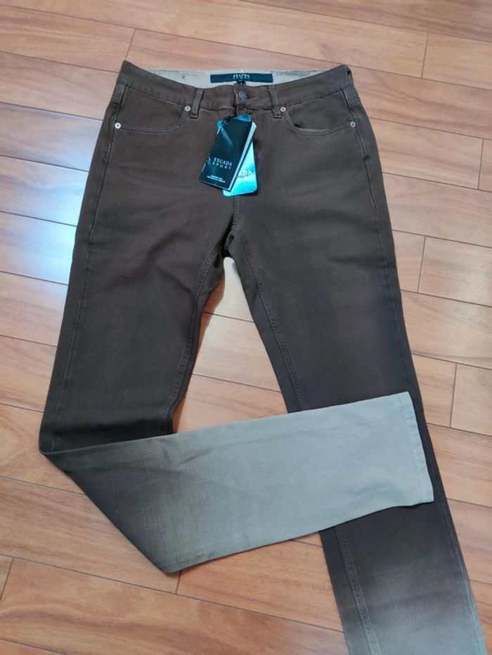 Pantalon slim bicolore marron Escada Sport 38 Neuf - photo numéro 1