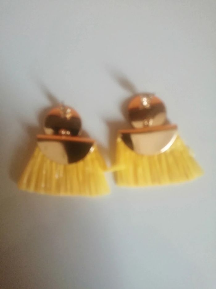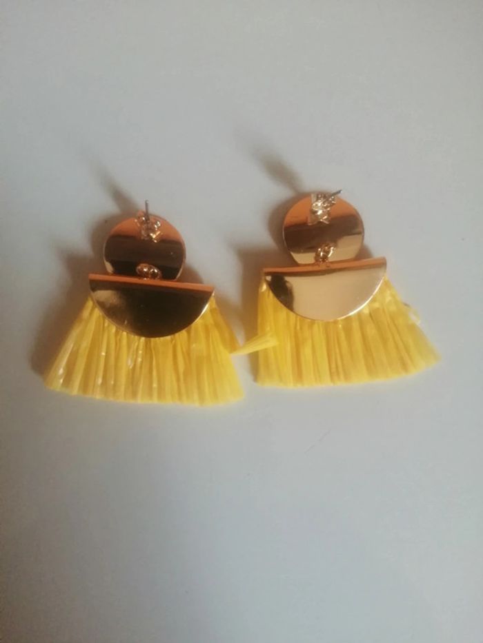 🌸Demi créoles dorées avec raphia "Ikita" 🌸 - photo numéro 2