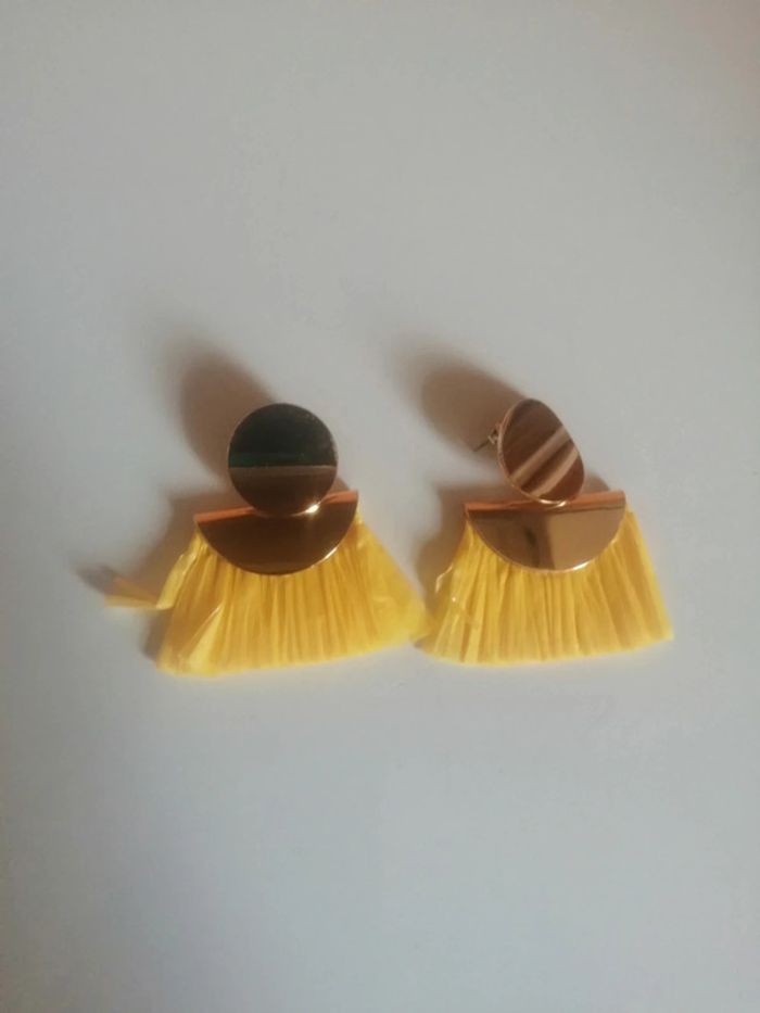 🌸Demi créoles dorées avec raphia "Ikita" 🌸 - photo numéro 1