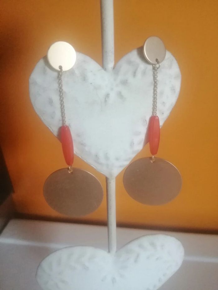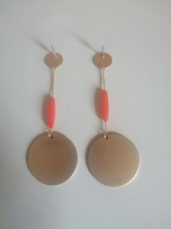 🌸Longues boucles d'oreilles dorées et orange "Ikita" Neuves 🌸