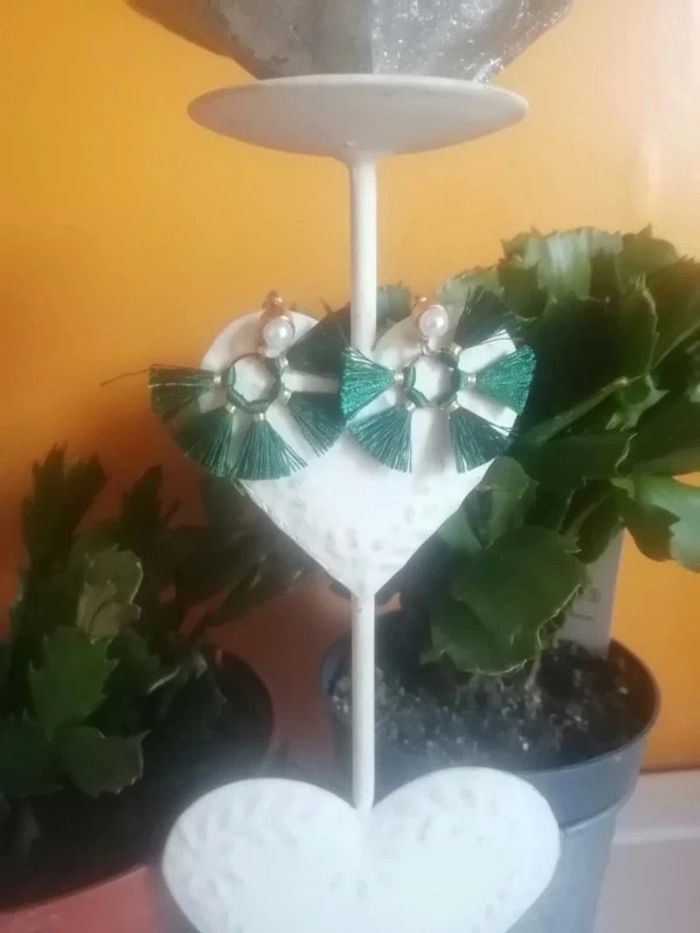 🌸Dormeuses dorées étoile de pompons verts 🌸