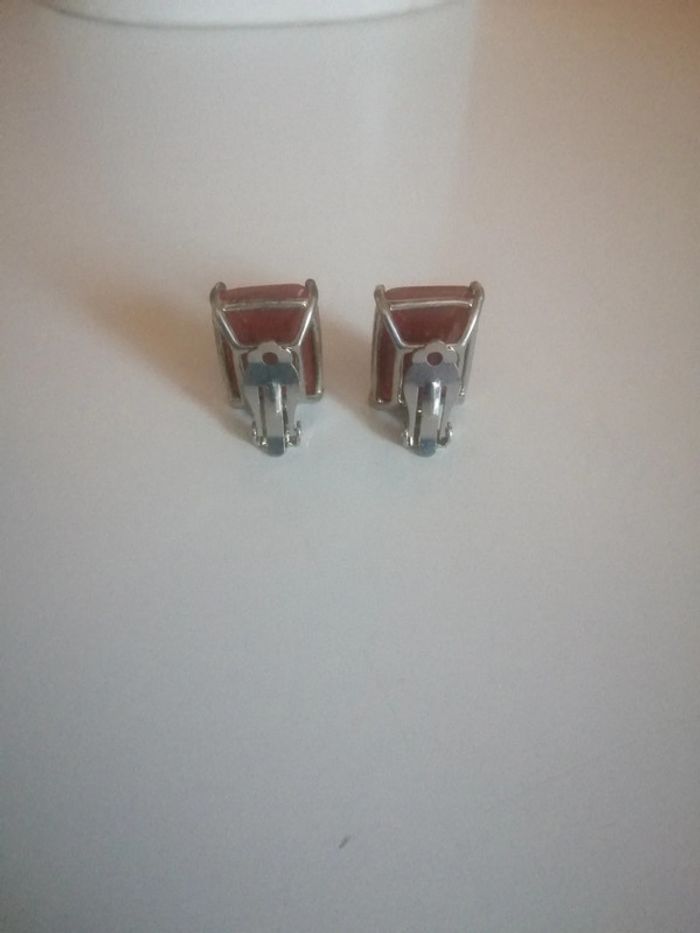 🌸Dormeuses carrées argentées et grenat à clips Vintage 🌸 - photo numéro 3