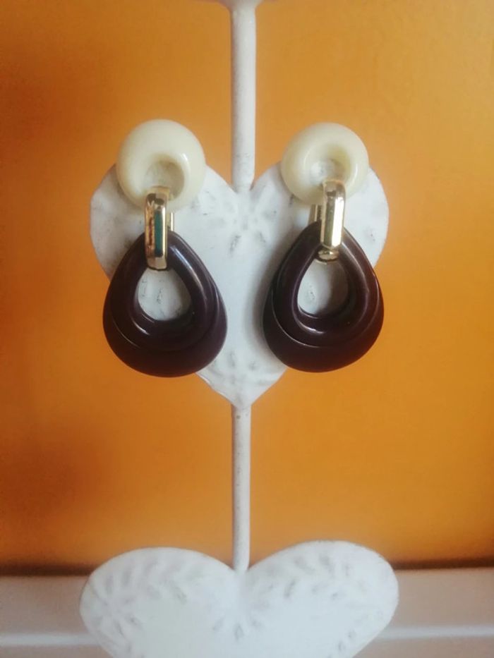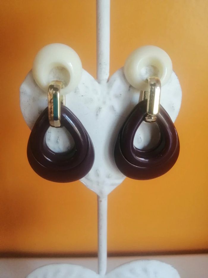 🌸Boucles d'oreilles seventies grenat et blanche "helema" 🌸 - photo numéro 2